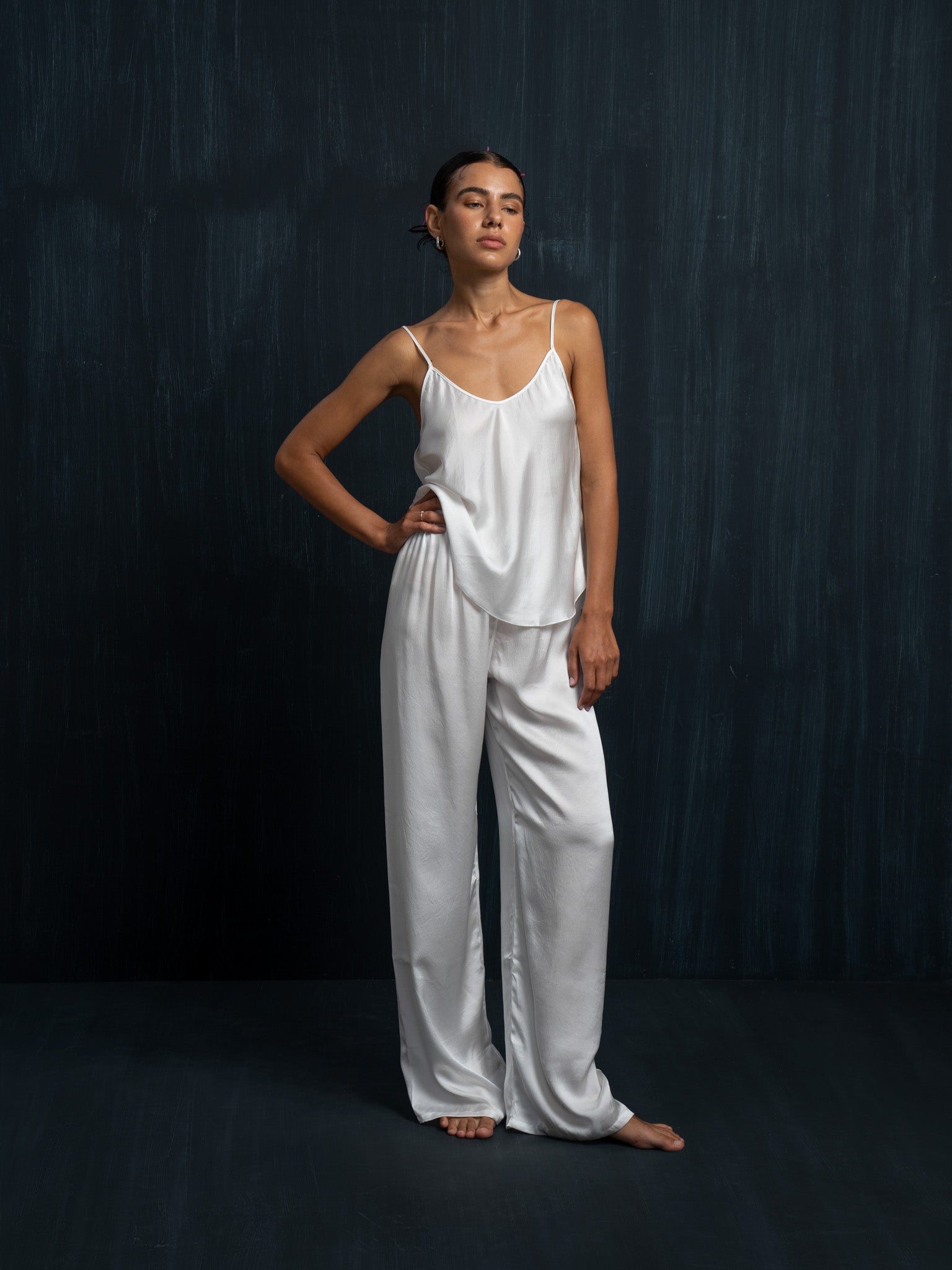 Crafted from the highest quality 100% mulberry silk, our Cami Slip Blouse is a timeless, essential piece - effortless, elegant, and endlessly wearable. Featuring a soft V neckline, thin adjustable straps, and a fluid silhouette, it’s designed to feel light, breathable, and luxurious against the skin.