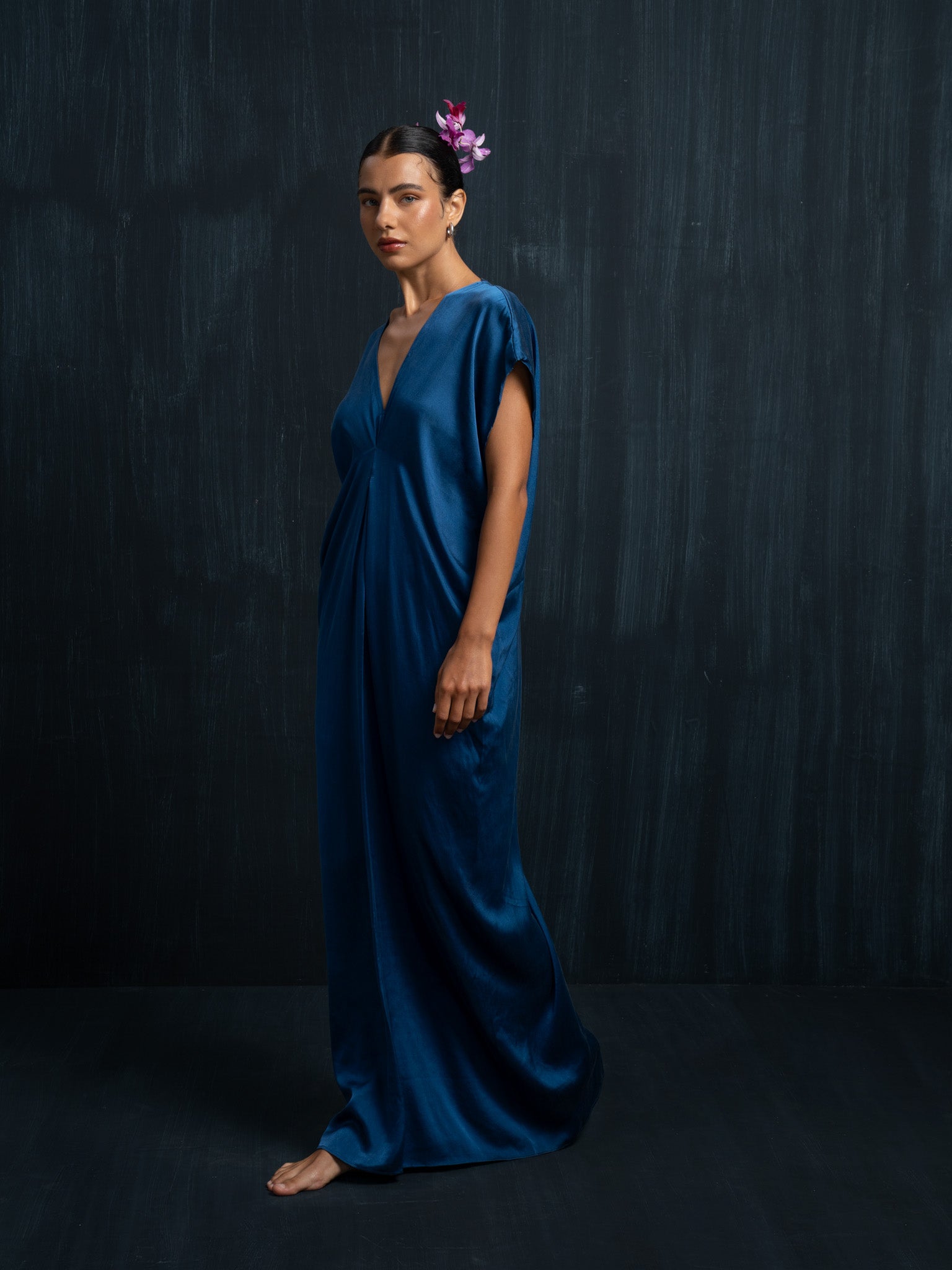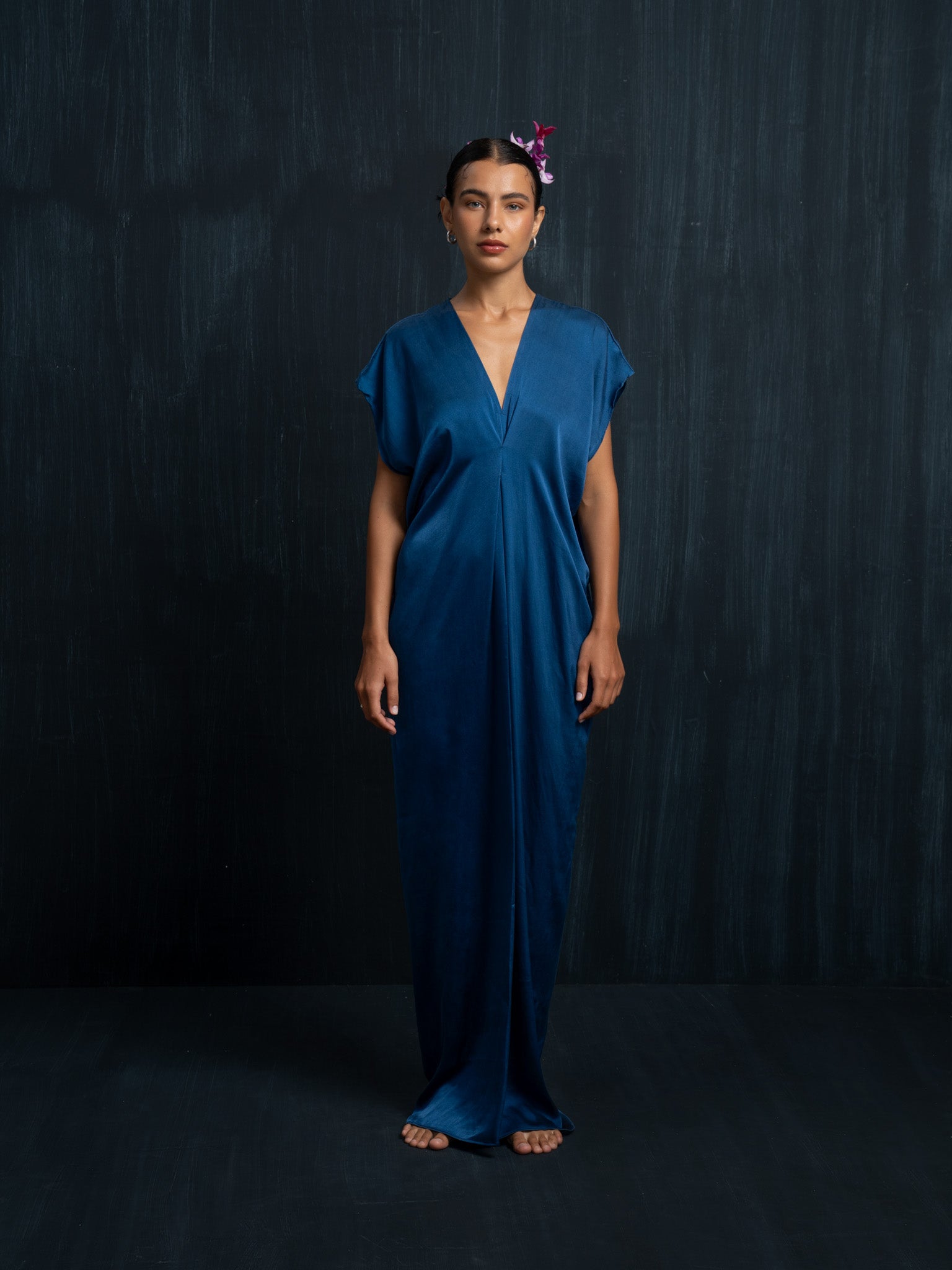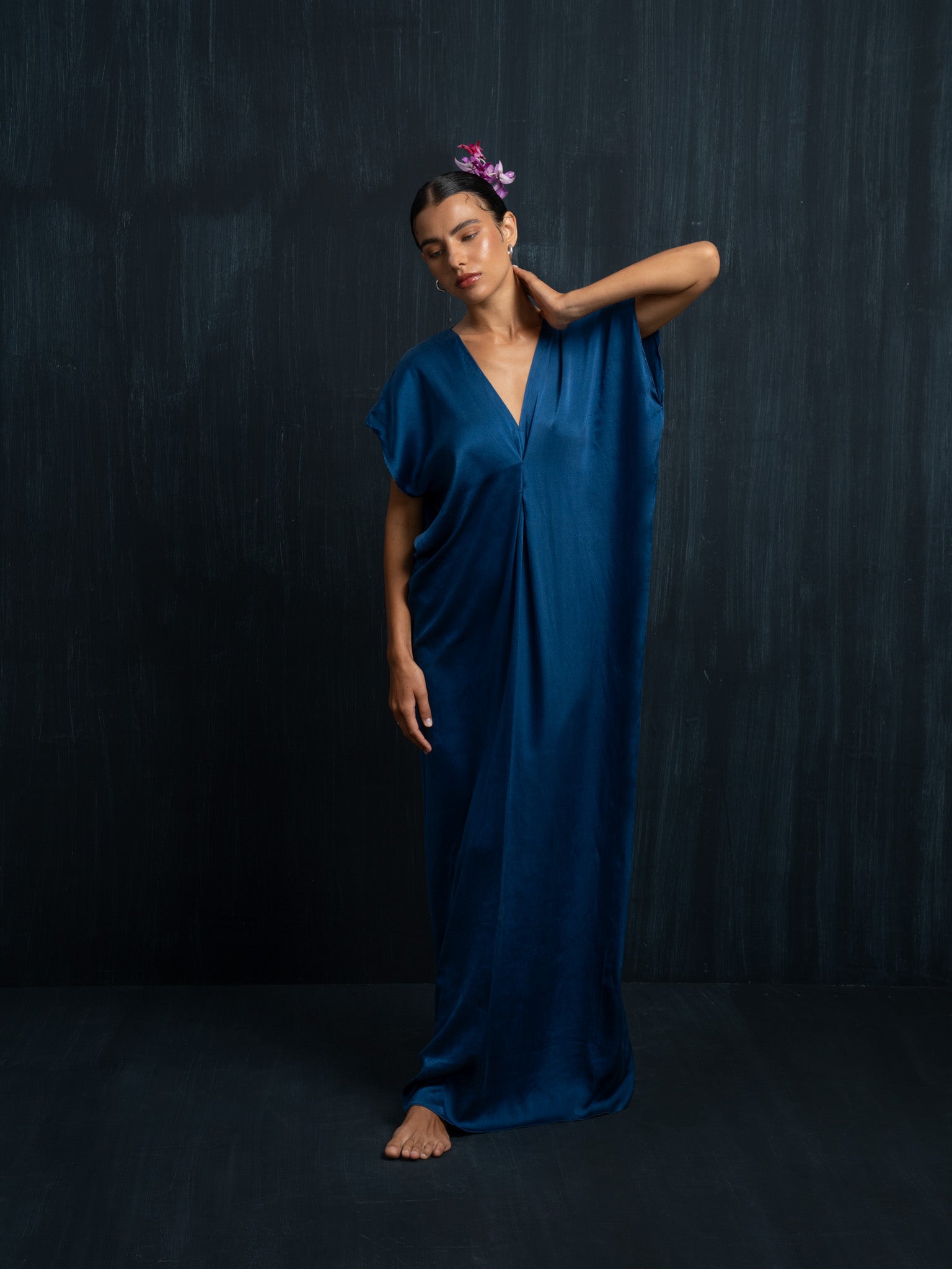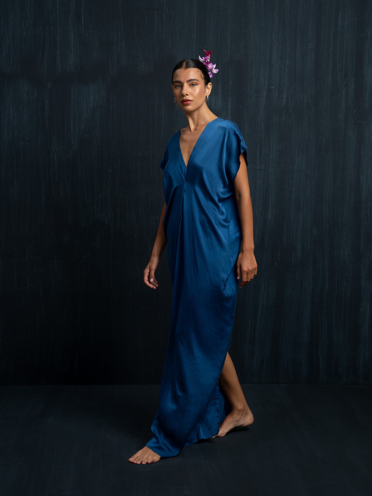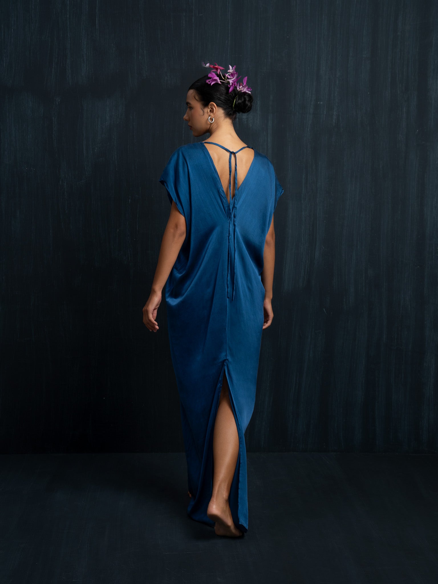 Our Indigo Gaya Silk Dress is hand-dyed with indigo leaves that are grown and harvested sustainability in Indonesia. Our Indigo Silk garments supports the natural dye community of Bali and celebrates the traditional art of botanical dyes. Each plant has its own energetic wavelength and purpose. They are here to guide us in times of need. Plants like indigo, empower us to enhance our intuition and engage in self reflection.