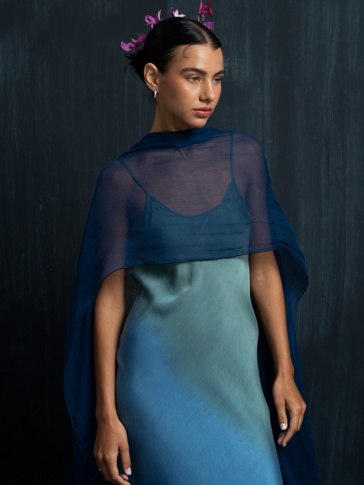 Scarlette Silk Dress - Indigo Ombre - Full Length